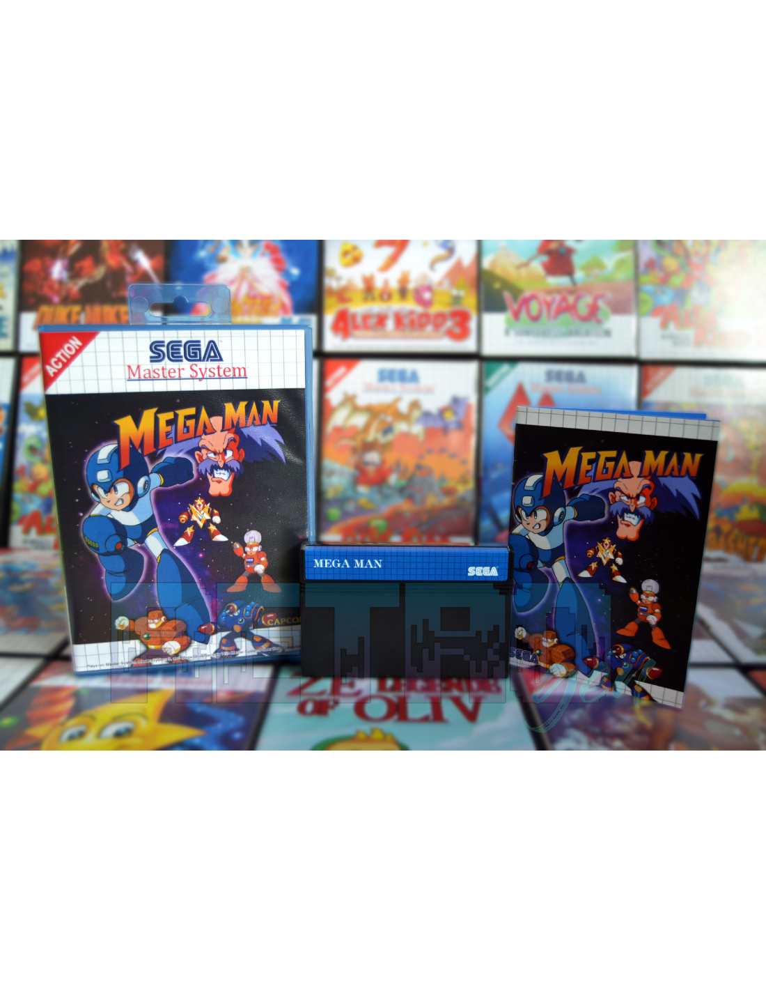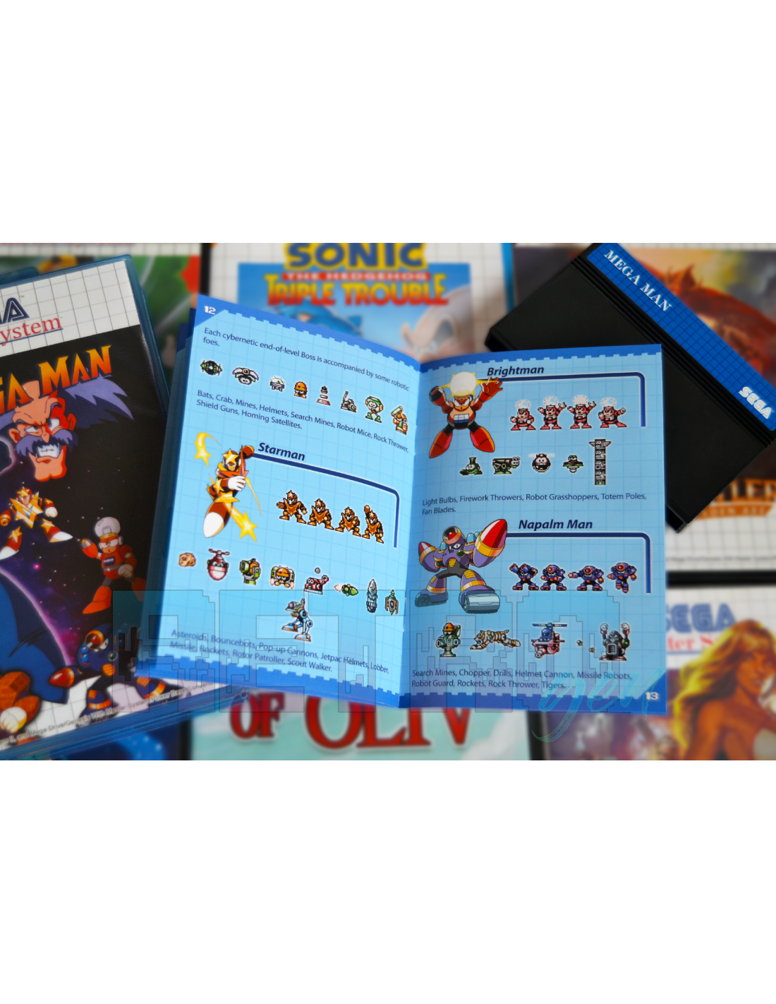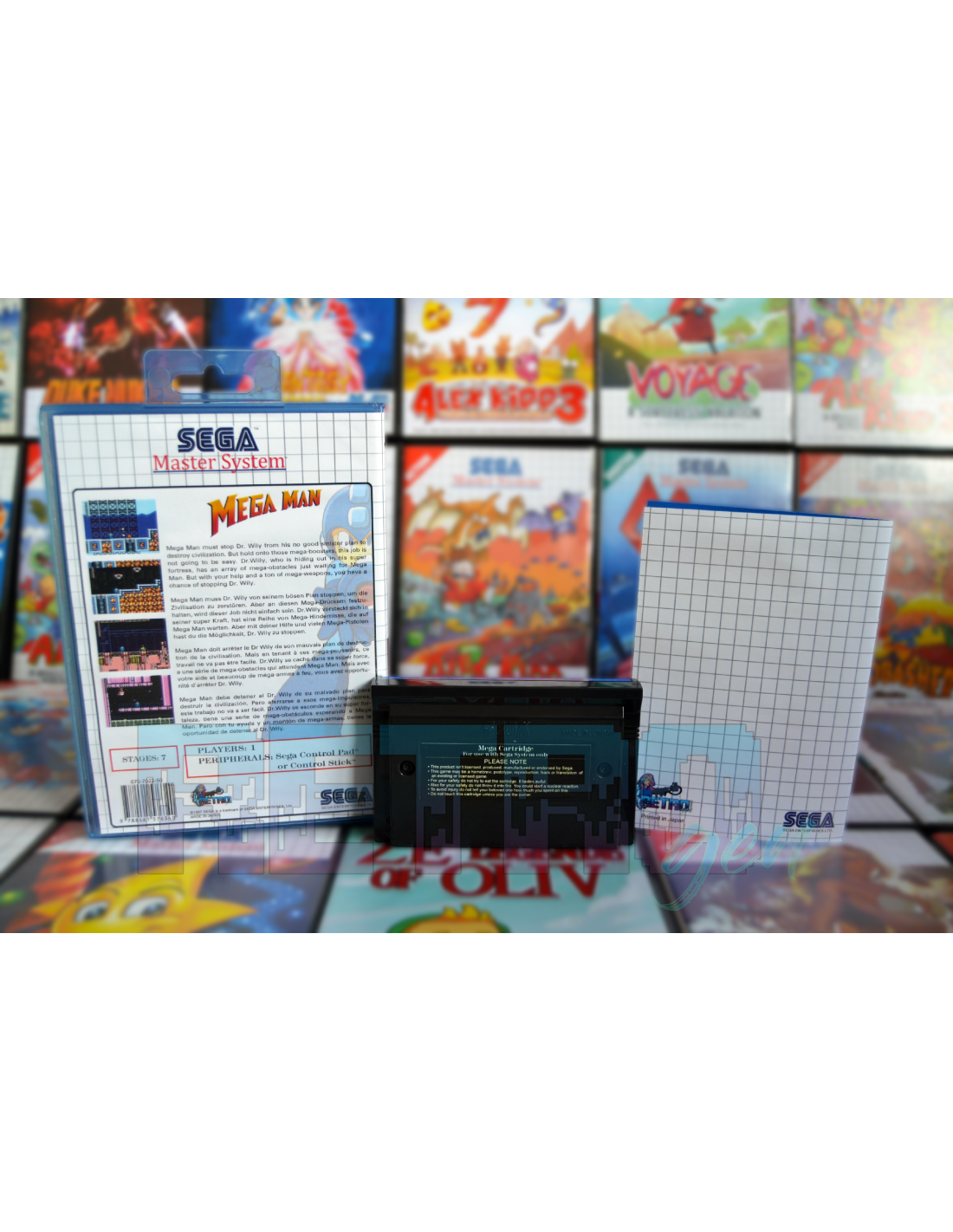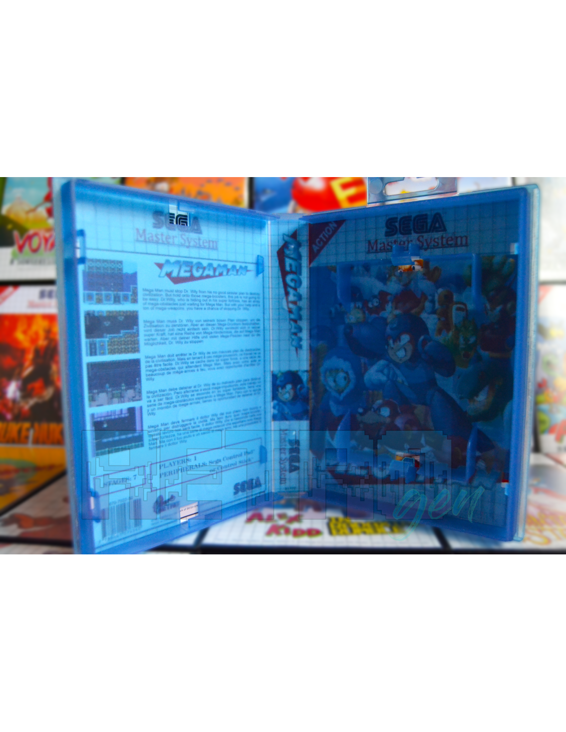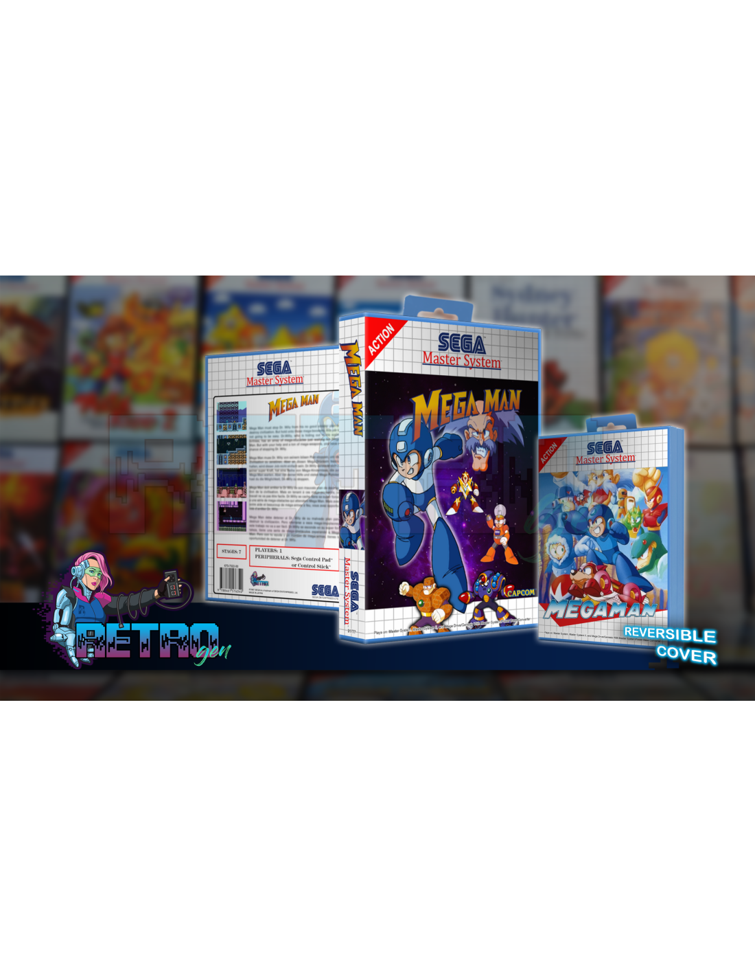 Video game Mega Man for the Sega Master System console. Includes box with reversible cover, game cartridge and color manual.